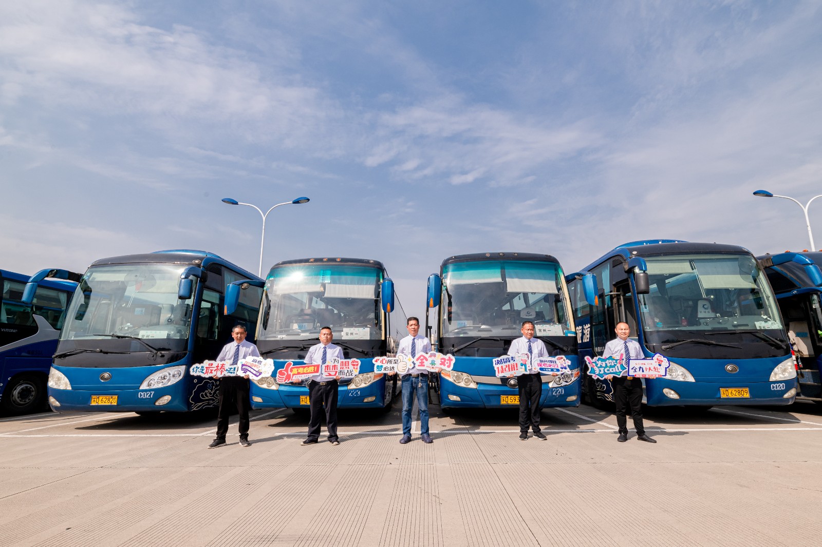 優(yōu)質(zhì)高考,服務(wù)更人性。所有車輛按照標(biāo)準(zhǔn)做好衛(wèi)生保潔工作,全程循環(huán)通風(fēng),提供一個(gè)綠色溫馨的乘車環(huán)境。所有駕駛員標(biāo)準(zhǔn)著裝,笑臉迎客,引導(dǎo)學(xué)生上車,在送考途中為考生播放相聲、小品等娛樂性的節(jié)目,為考生減壓。公司還精心制作了“高考必勝、為你打call”等標(biāo)牌,為考生助力加油。駕駛員將嚴(yán)格按照規(guī)定時(shí)間發(fā)車,全程勻速行駛,確保安全準(zhǔn)點(diǎn)將考生送達(dá)指定考場(chǎng)??忌萝嚭?,駕駛員將及時(shí)對(duì)車內(nèi)進(jìn)行細(xì)致的檢查,防止出現(xiàn)“馬大哈”學(xué)生丟失文具的情況出現(xiàn)。公司還安排安管人員帶隊(duì),做好現(xiàn)場(chǎng)指揮管理,配備應(yīng)急車輛及機(jī)動(dòng)駕駛員,做好應(yīng)急保障。